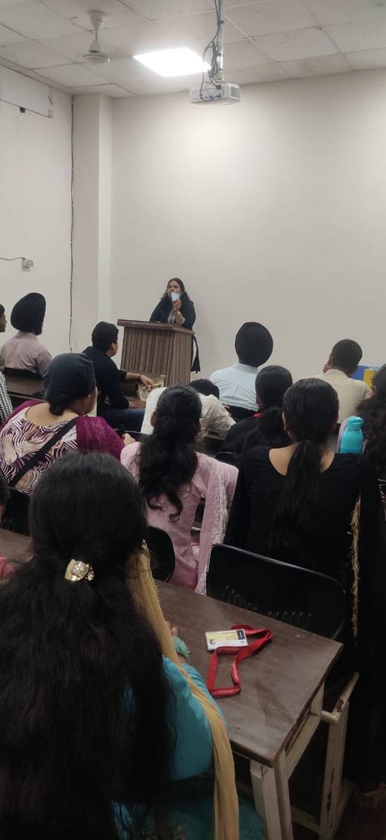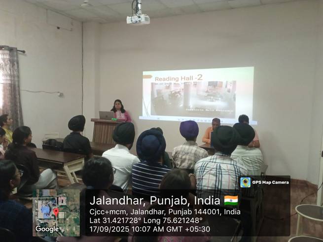 11. Library Orientation Program (2024-2025): Knowledge Resource Centre, DAV University organized Orientation Program from 3rd Sep. 2024 to 15th Sep. 2024 for the new enrolled students . Department wise sessions were conducted by Ms maninder Kaur Sood, Incharge KRC, to make the students aware about various resources and services offered by the library. During this orientation program, virtual tour of the library as well as demonstrative session on the use of Library Web Opac was arranged. The students were also notified about the rules and regulations of the library, which are strictly required to maintain the discipline and decorum of the library. After the end of each session, library membership cards were issued to the students, so that they can borrow learning material from the library.